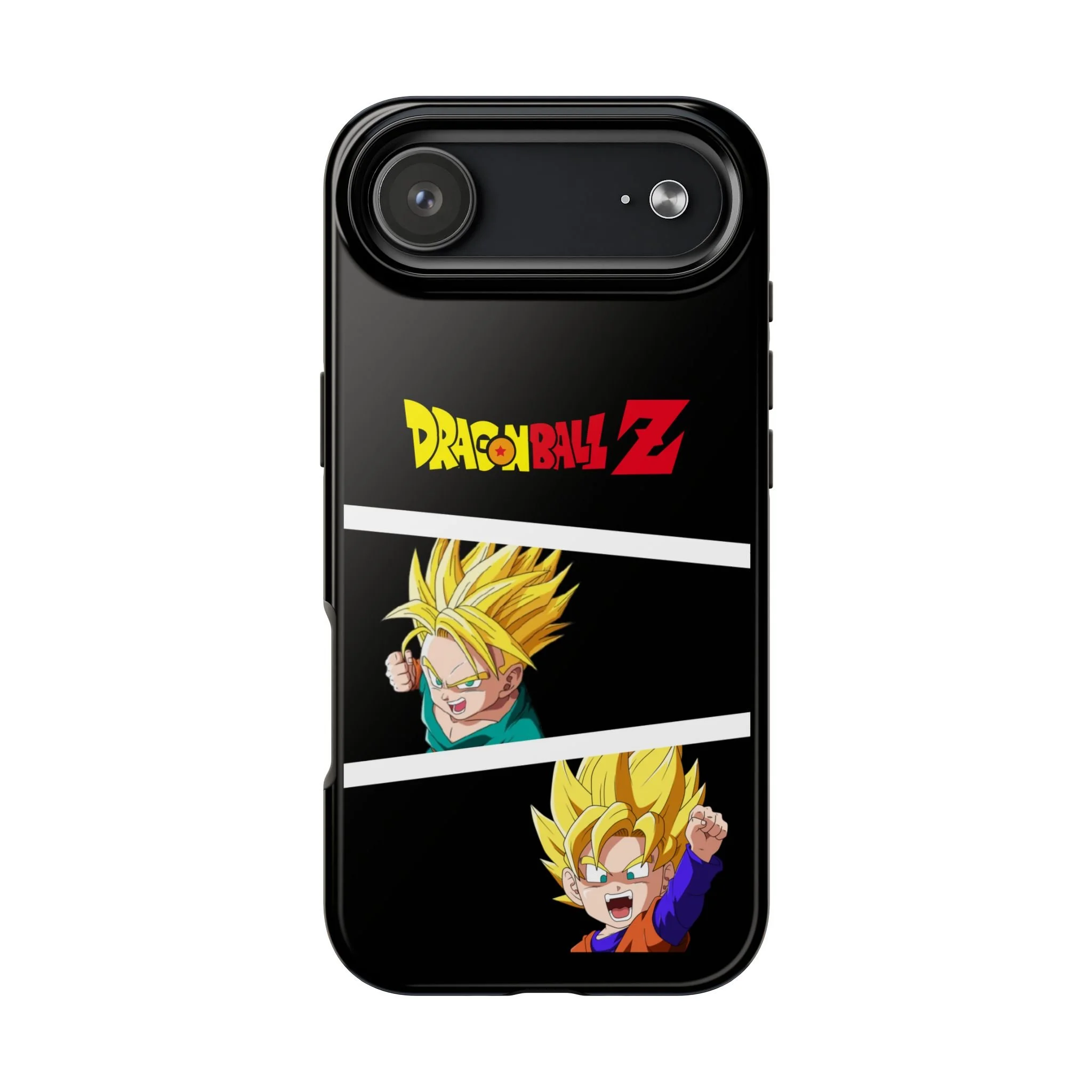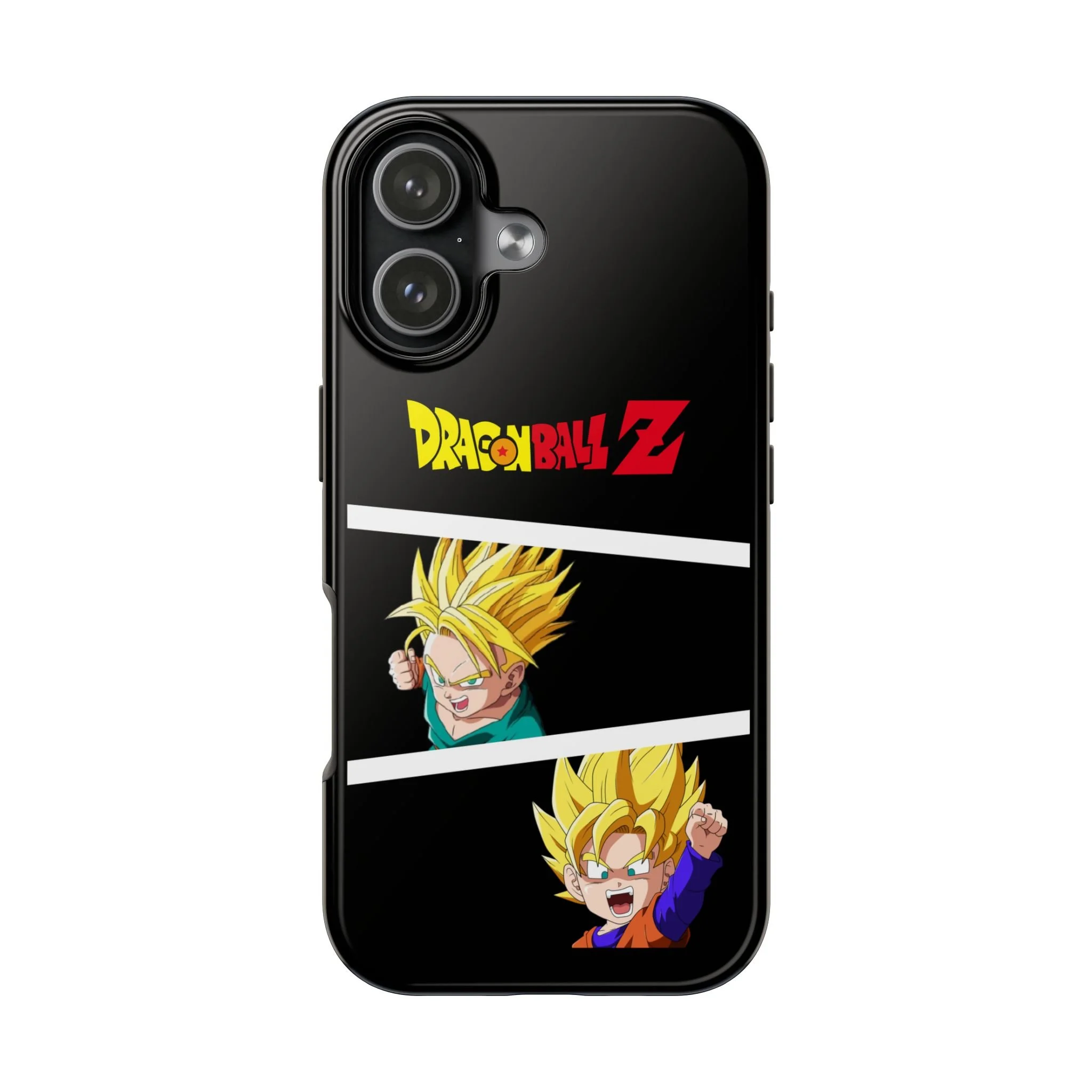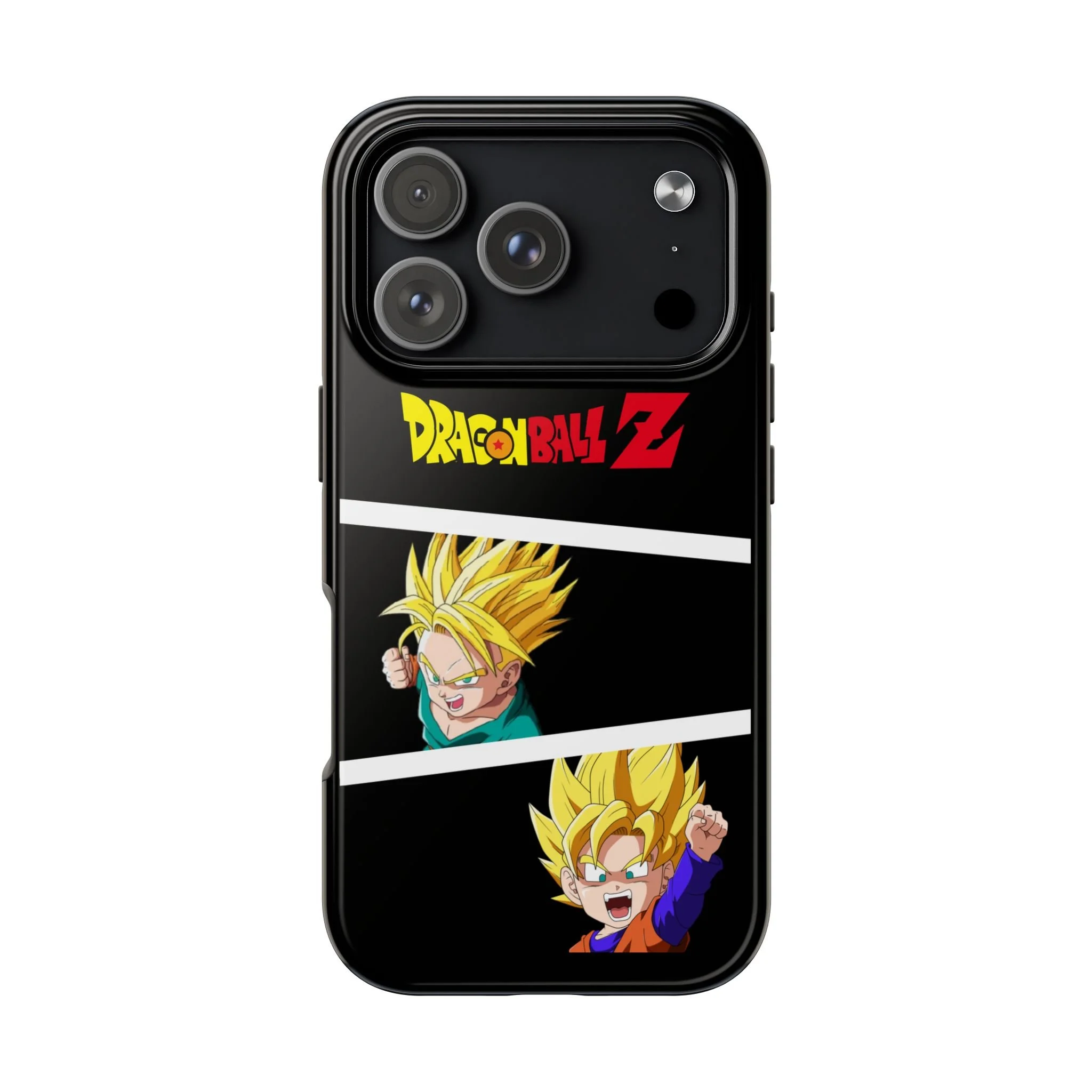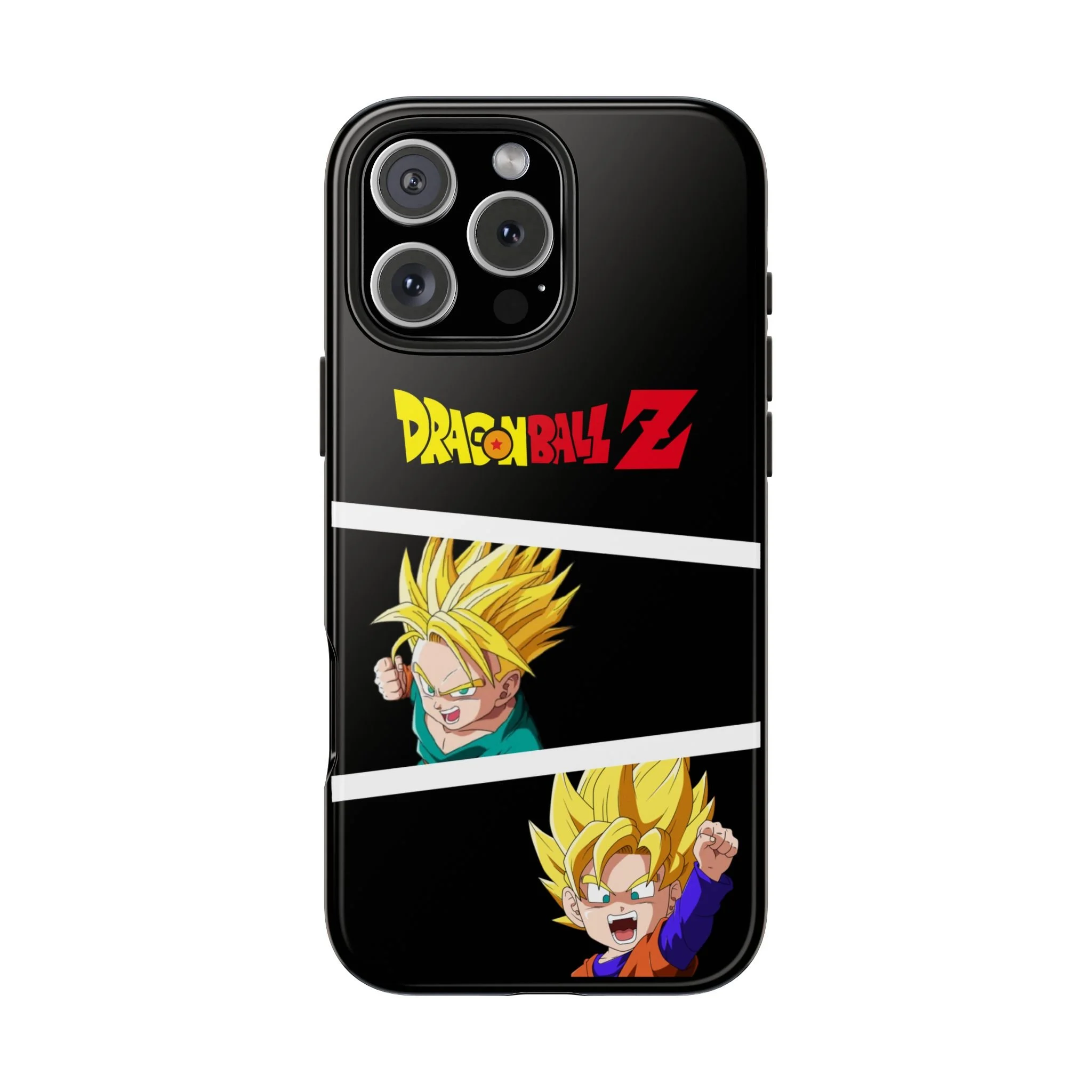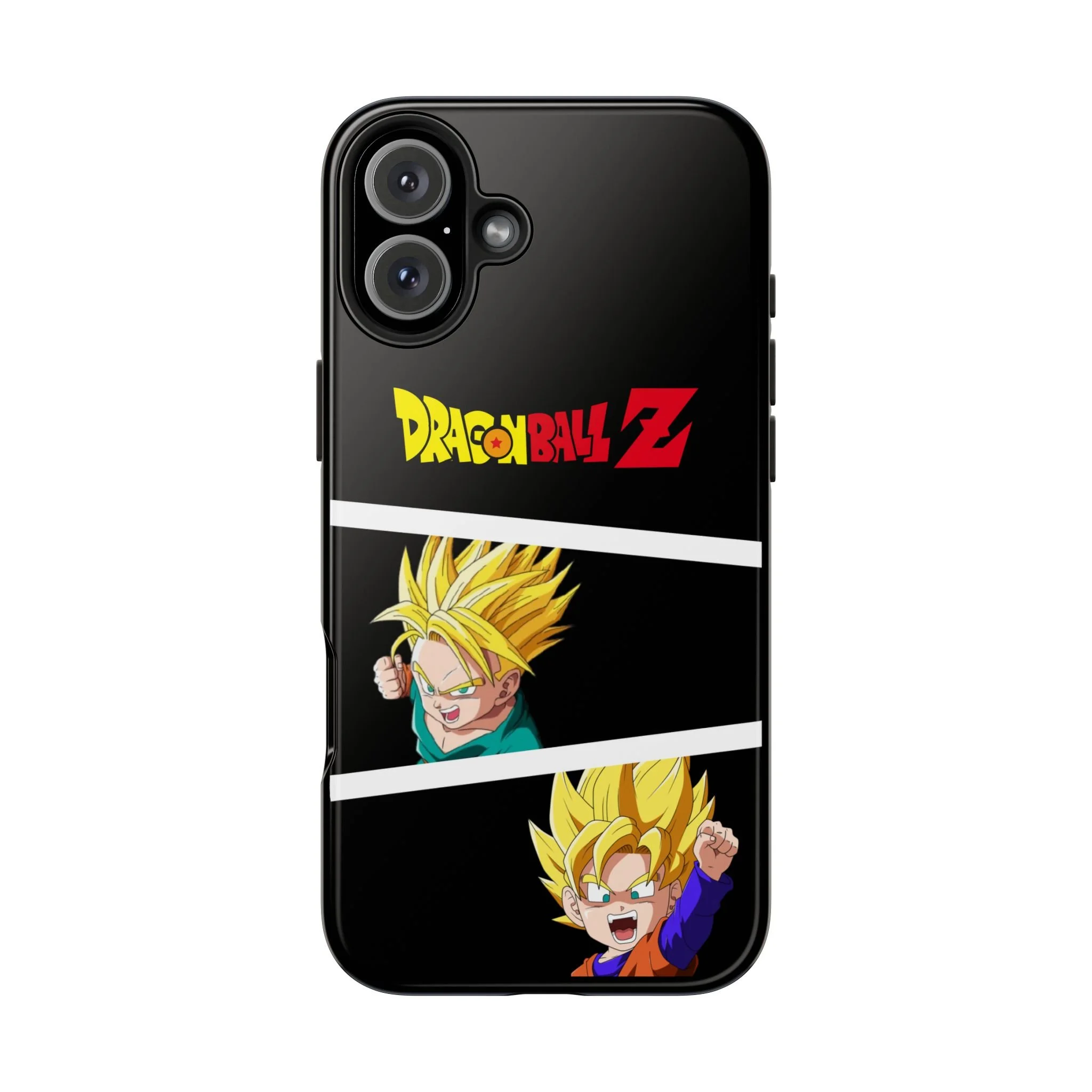 A bold, glossy phone case that brings Dragon Ball Z energy to your everyday carry. The high-shine finish makes the black background and vibrant Super Saiyan artwork pop, with three dynamic vertical panels showing a young Goku powering up. Built with a tough polycarbonate shell and a shock-absorbing TPU liner, this two-piece design shields your phone from drops while a lay-flat bezel helps keep the screen off rough surfaces. UV protection keeps colors bright through outdoor use, and wireless charging remains supported so you can power up without removing the case. It’s a compact, sturdy way for fans to carry a bit of nostalgia and action everywhere they go.