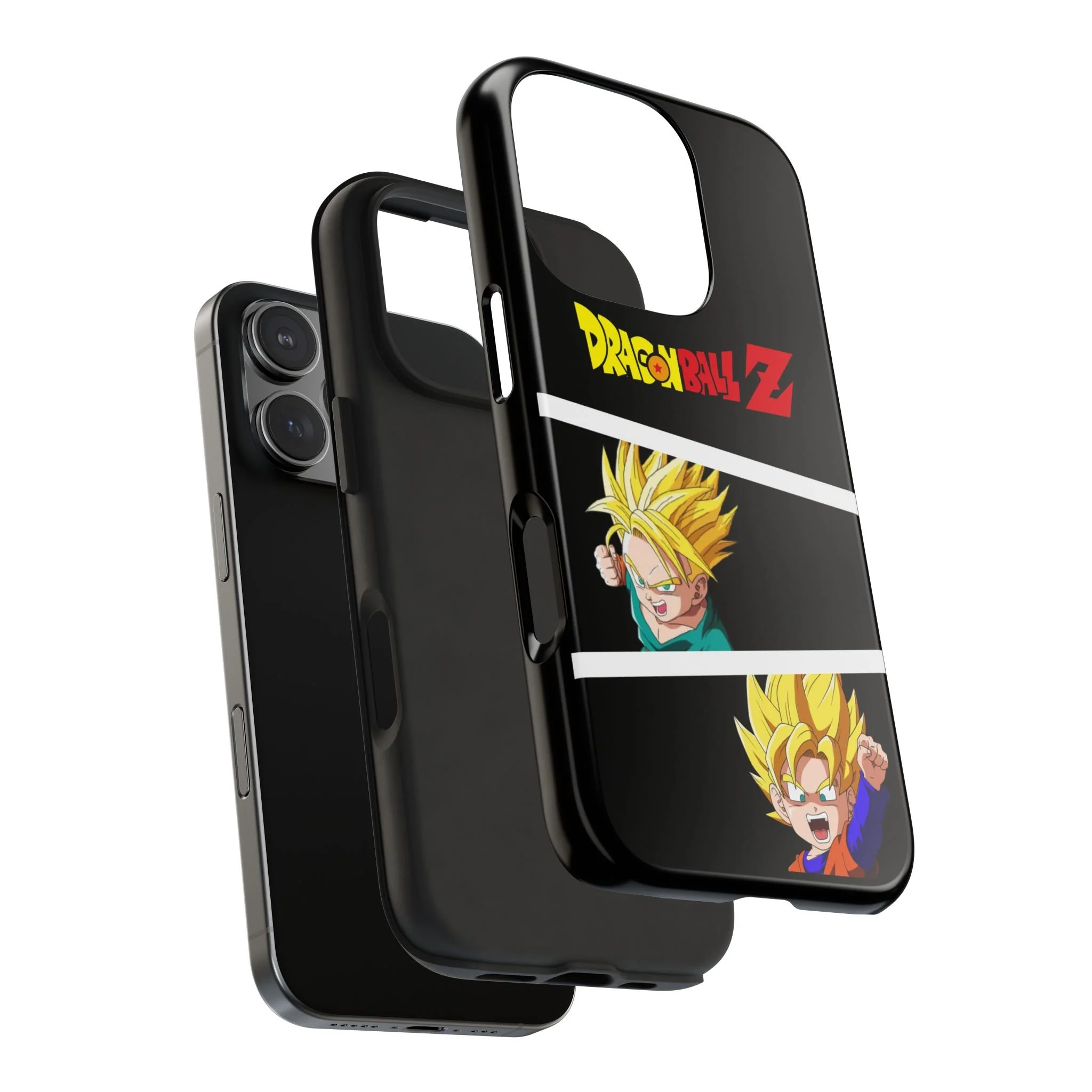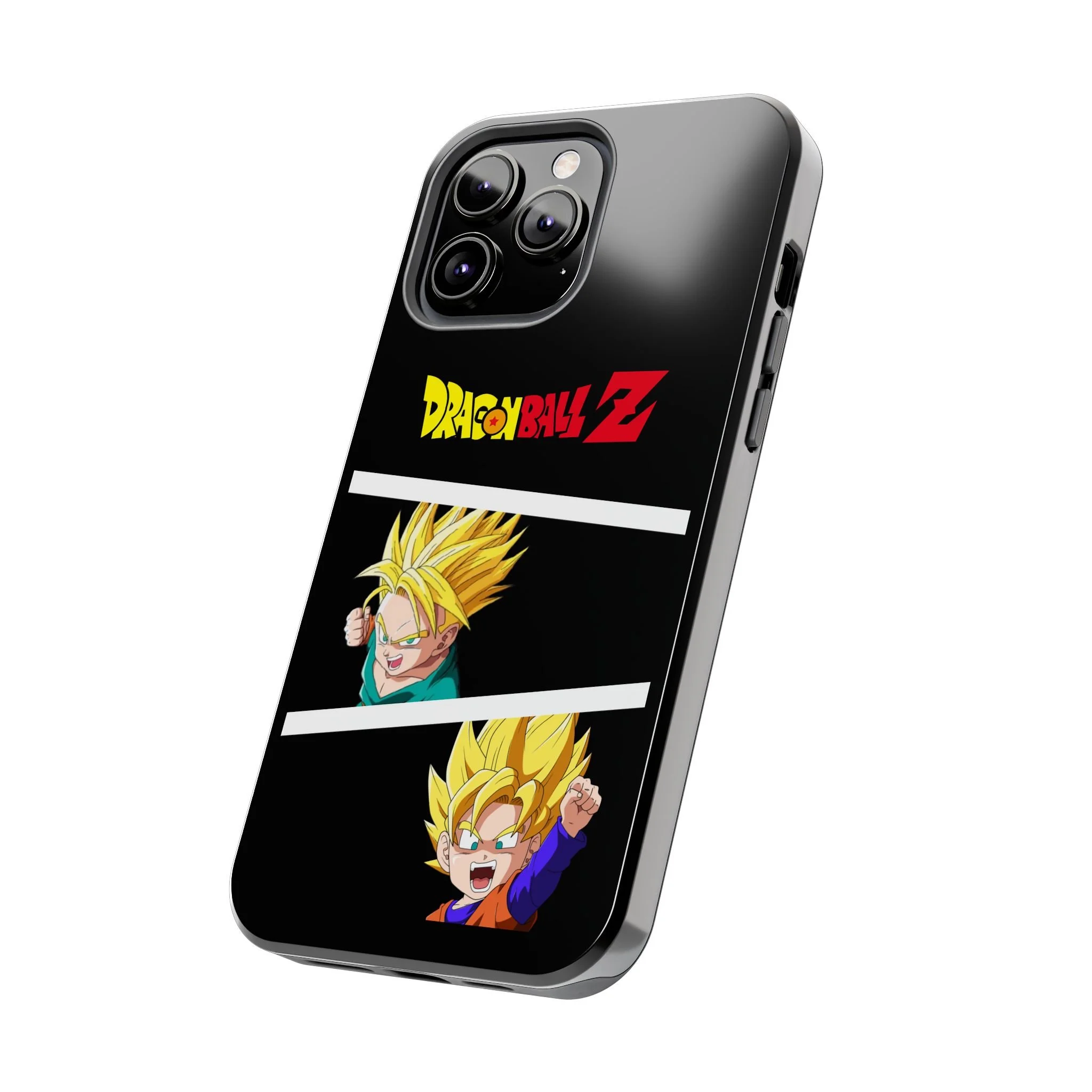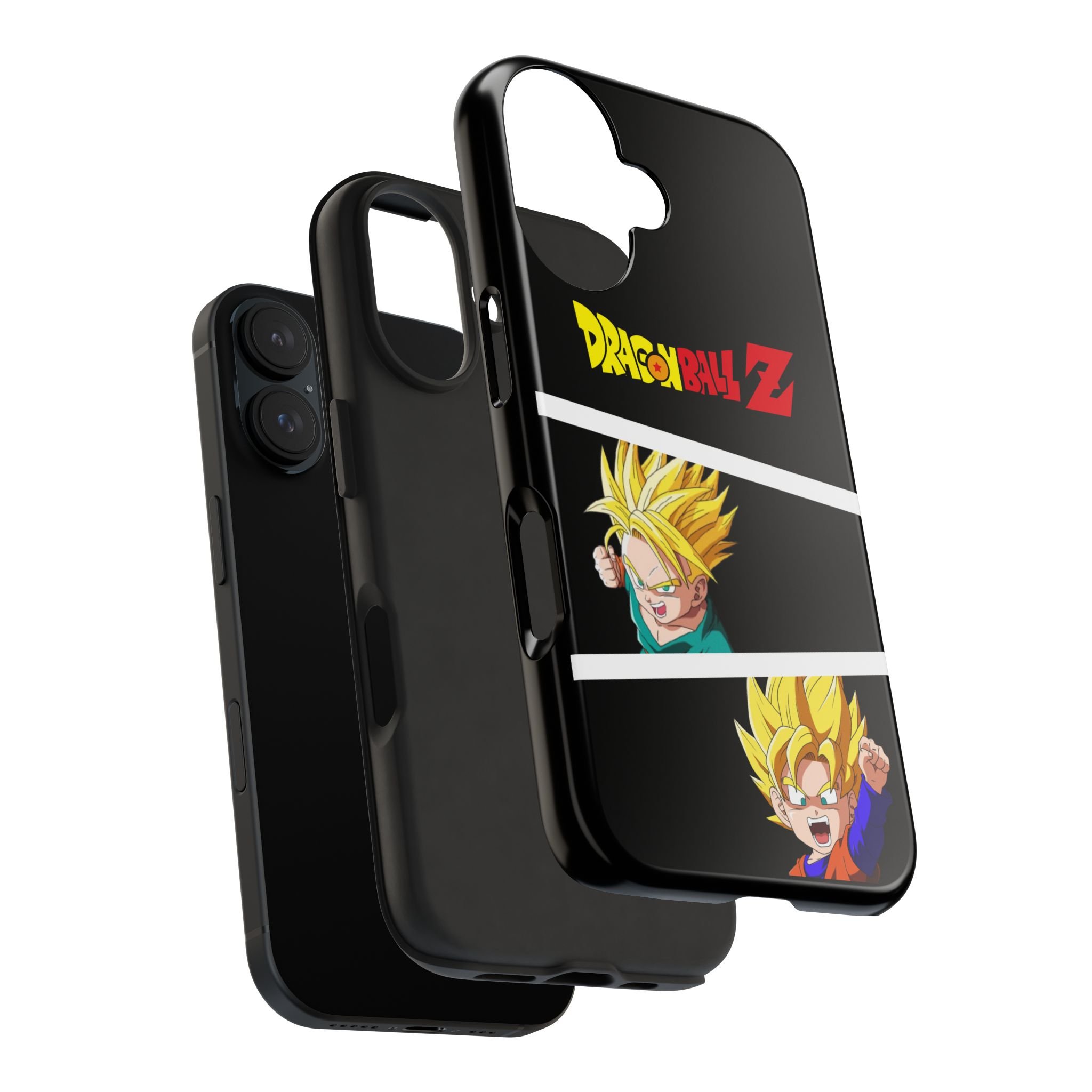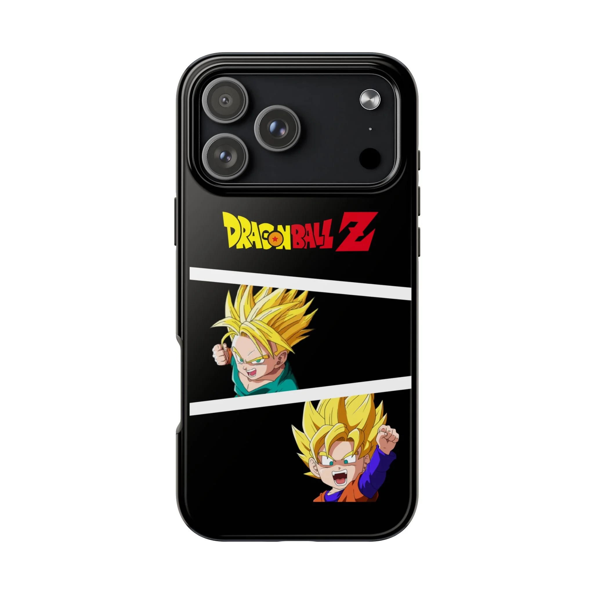 A bold, glossy phone case that brings Dragon Ball Z energy to your everyday carry. The high-shine finish makes the black background and vibrant Super Saiyan artwork pop, with three dynamic vertical panels showing a young Goku powering up. Built with a tough polycarbonate shell and a shock-absorbing TPU liner, this two-piece design shields your phone from drops while a lay-flat bezel helps keep the screen off rough surfaces. UV protection keeps colors bright through outdoor use, and wireless charging remains supported so you can power up without removing the case. It’s a compact, sturdy way for fans to carry a bit of nostalgia and action everywhere they go.