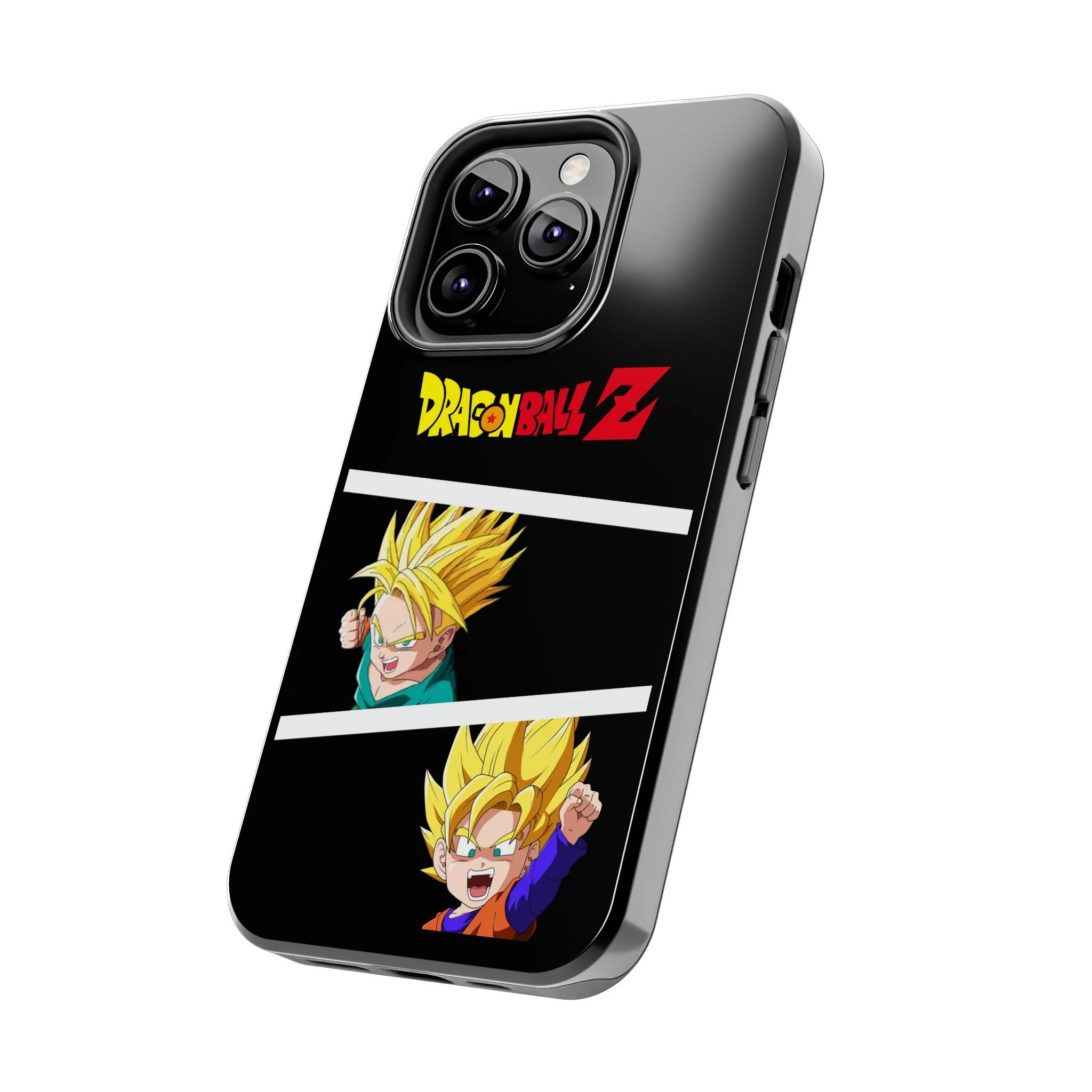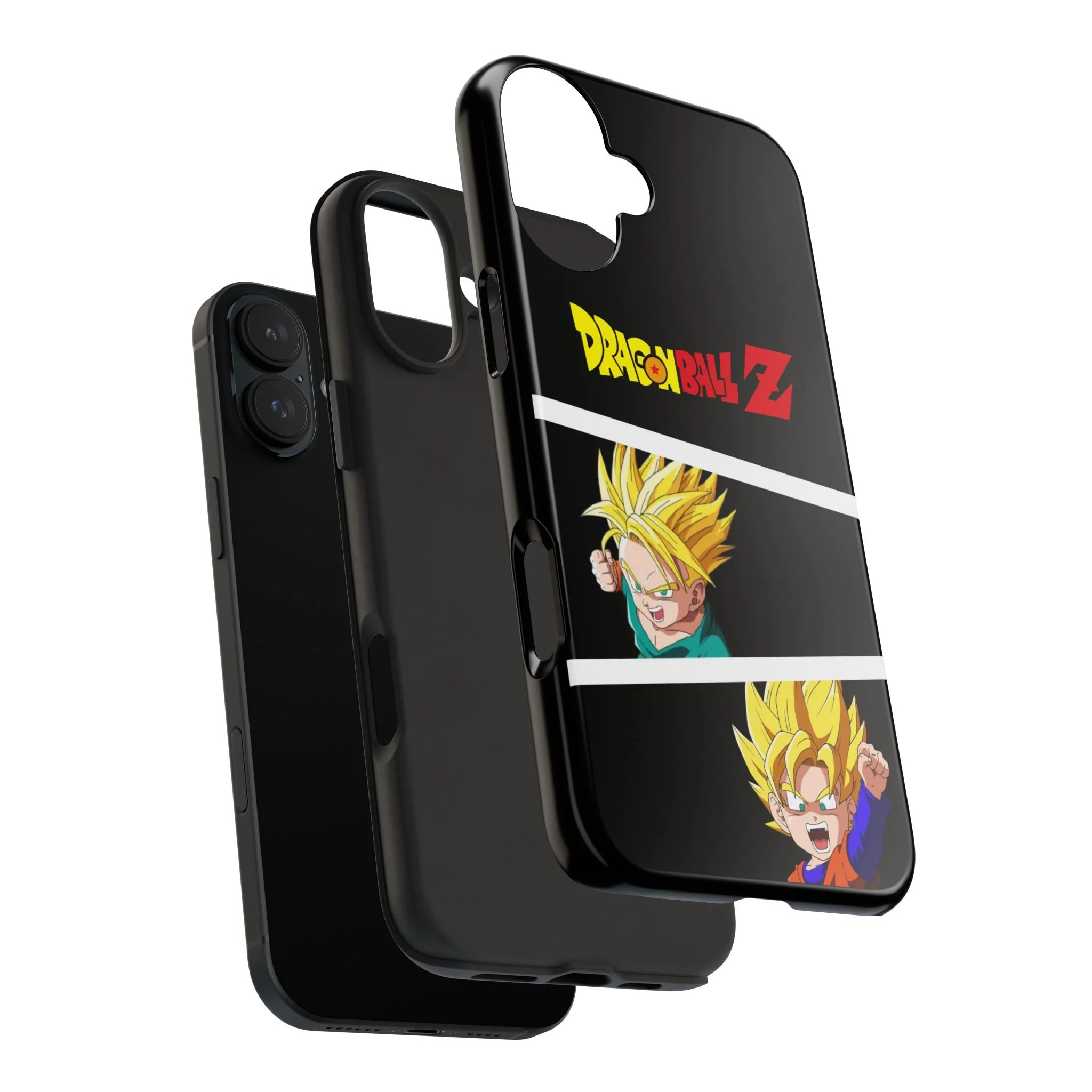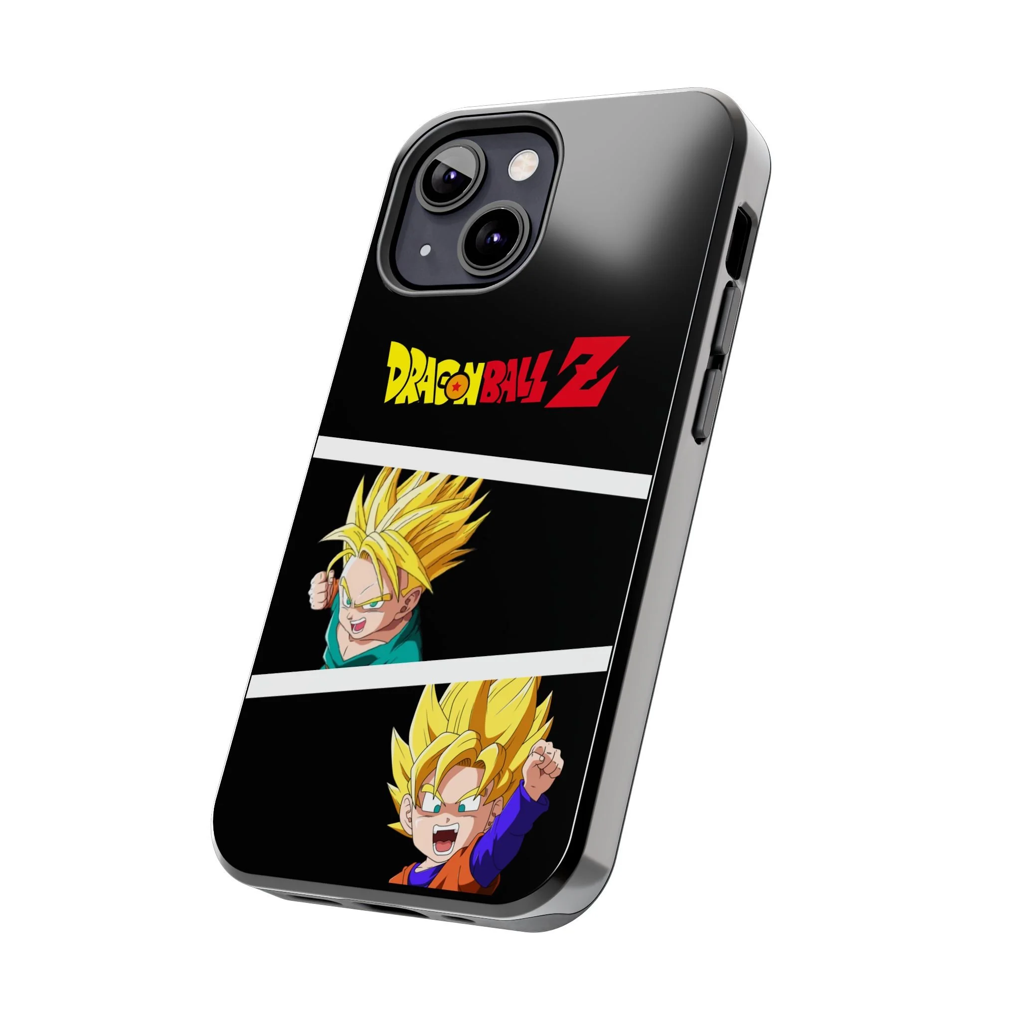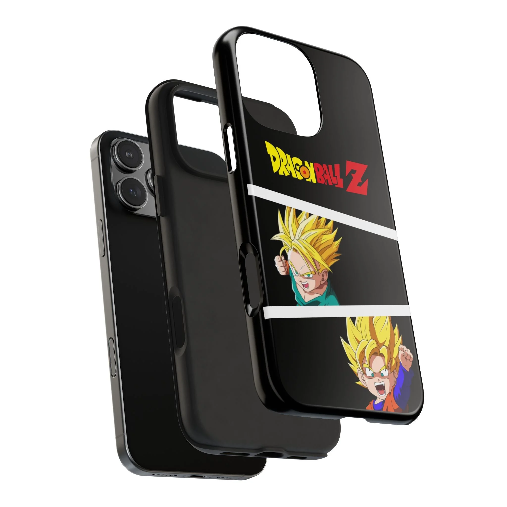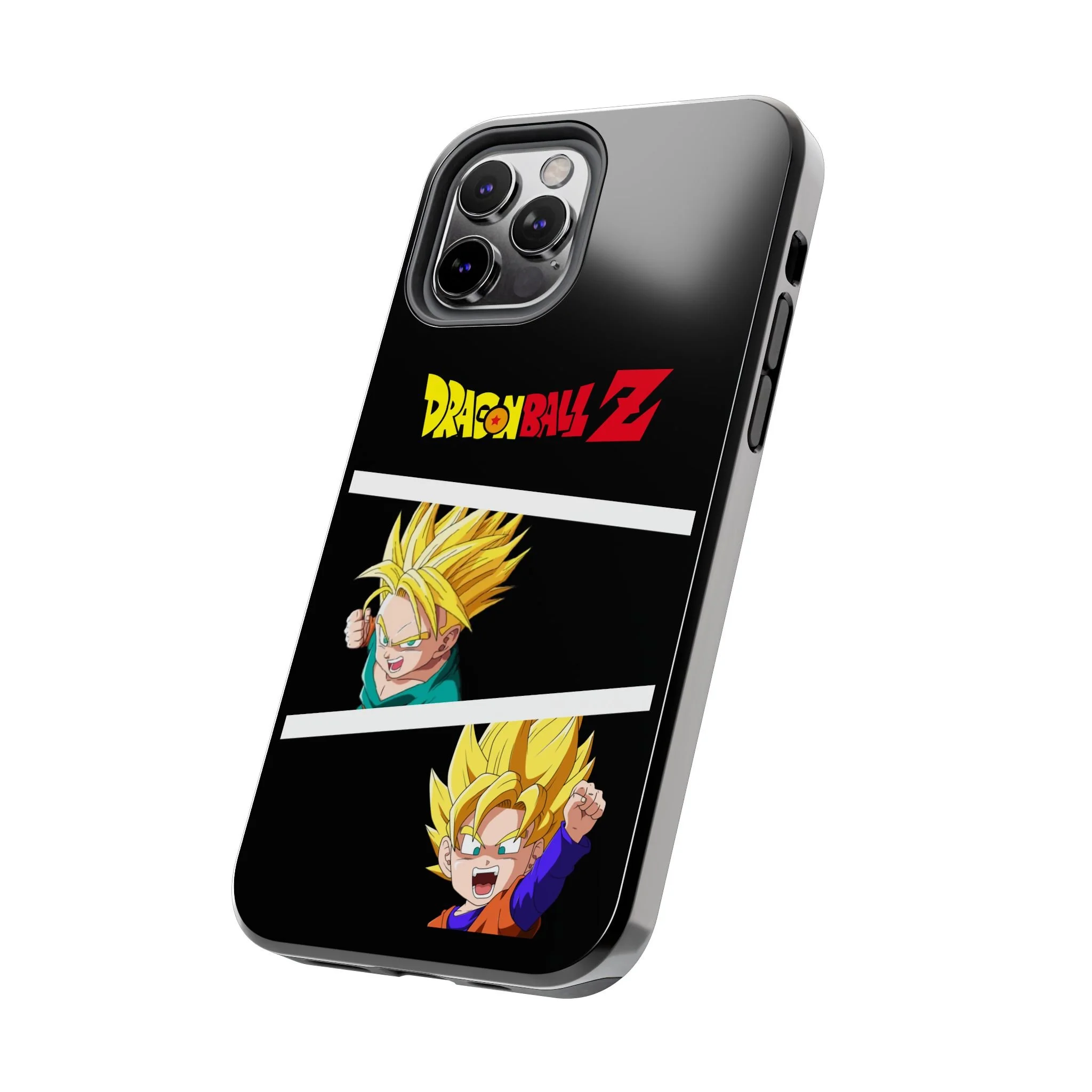 A bold, glossy phone case that brings Dragon Ball Z energy to your everyday carry. The high-shine finish makes the black background and vibrant Super Saiyan artwork pop, with three dynamic vertical panels showing a young Goku powering up. Built with a tough polycarbonate shell and a shock-absorbing TPU liner, this two-piece design shields your phone from drops while a lay-flat bezel helps keep the screen off rough surfaces. UV protection keeps colors bright through outdoor use, and wireless charging remains supported so you can power up without removing the case. It’s a compact, sturdy way for fans to carry a bit of nostalgia and action everywhere they go.