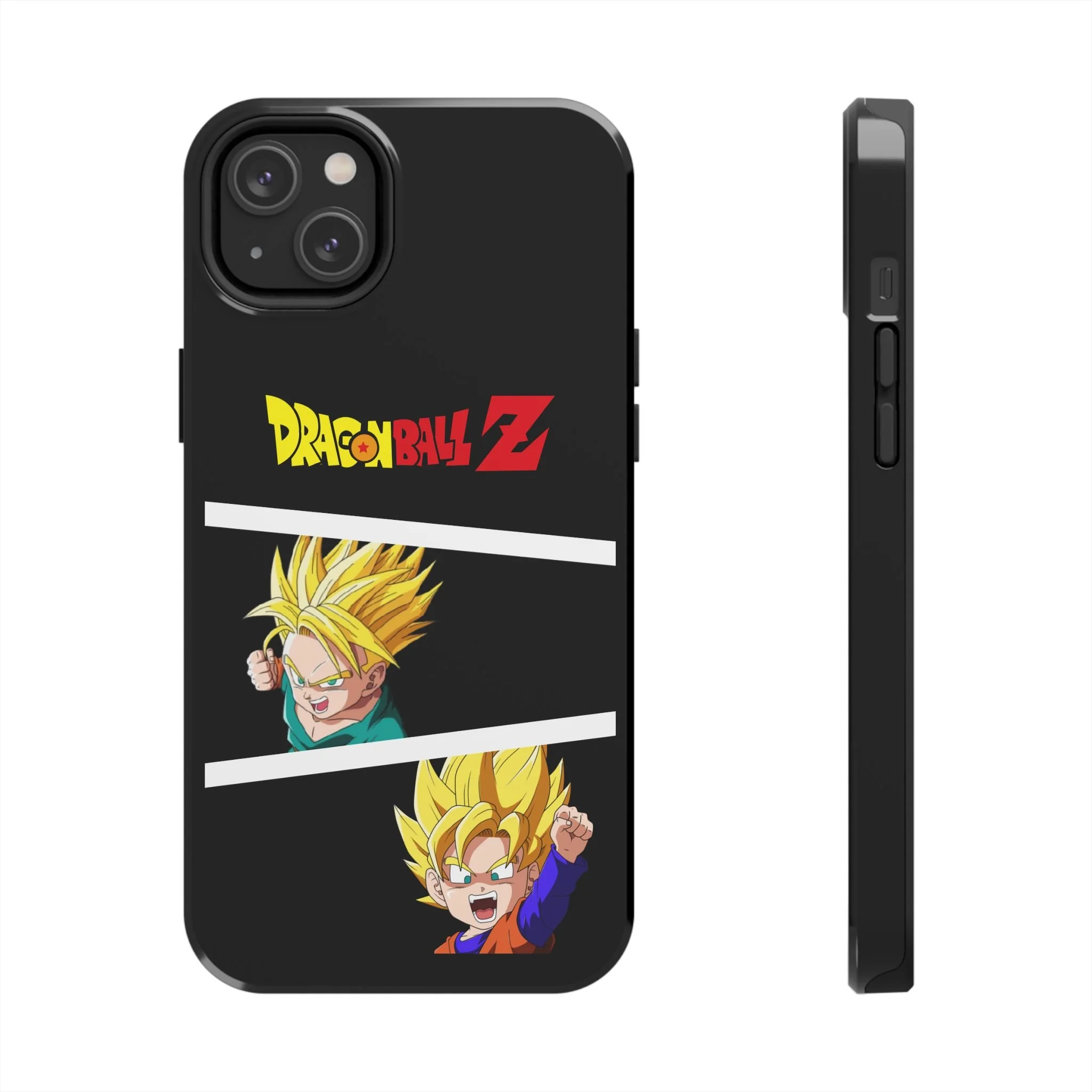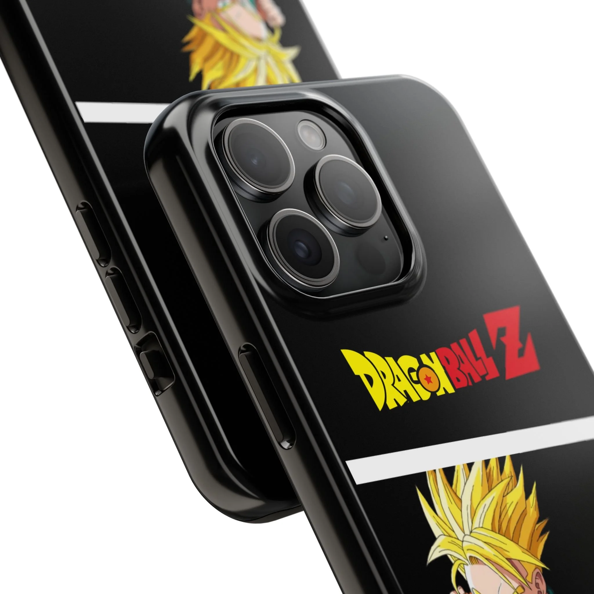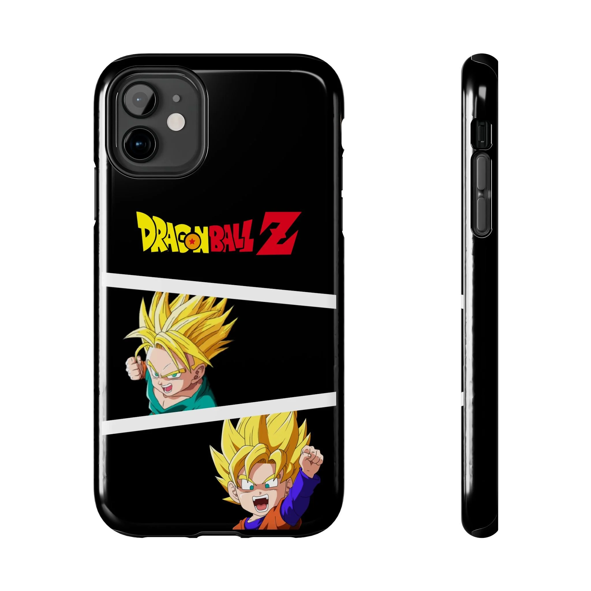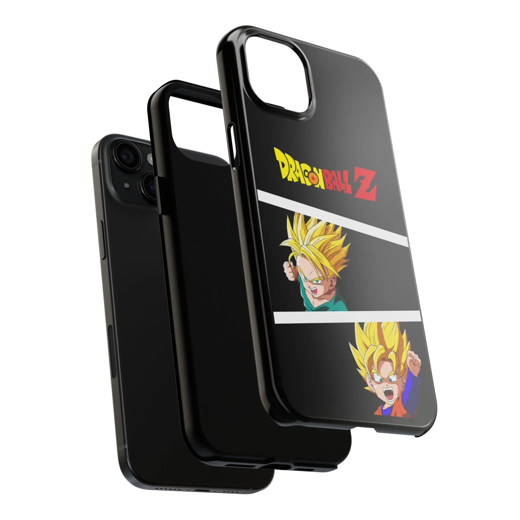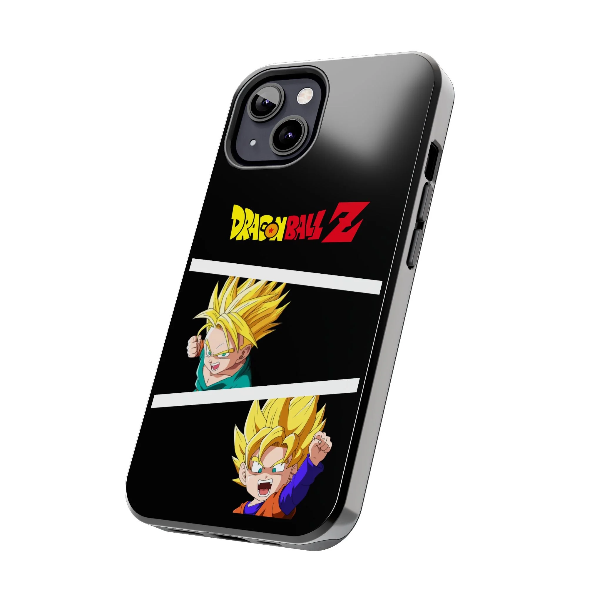A bold, glossy phone case that brings Dragon Ball Z energy to your everyday carry. The high-shine finish makes the black background and vibrant Super Saiyan artwork pop, with three dynamic vertical panels showing a young Goku powering up. Built with a tough polycarbonate shell and a shock-absorbing TPU liner, this two-piece design shields your phone from drops while a lay-flat bezel helps keep the screen off rough surfaces. UV protection keeps colors bright through outdoor use, and wireless charging remains supported so you can power up without removing the case. It’s a compact, sturdy way for fans to carry a bit of nostalgia and action everywhere they go.