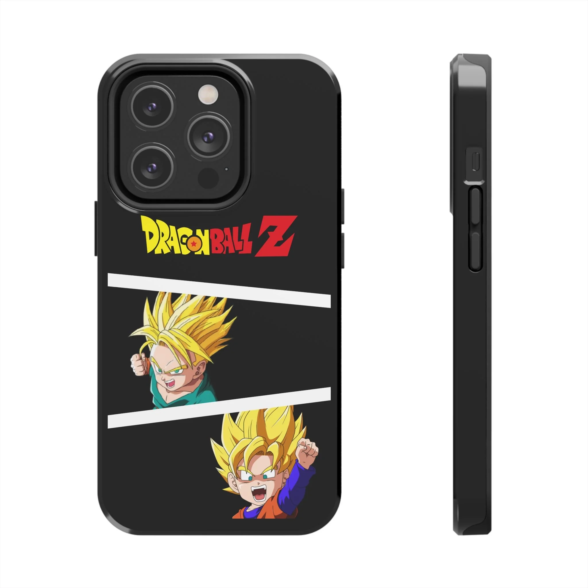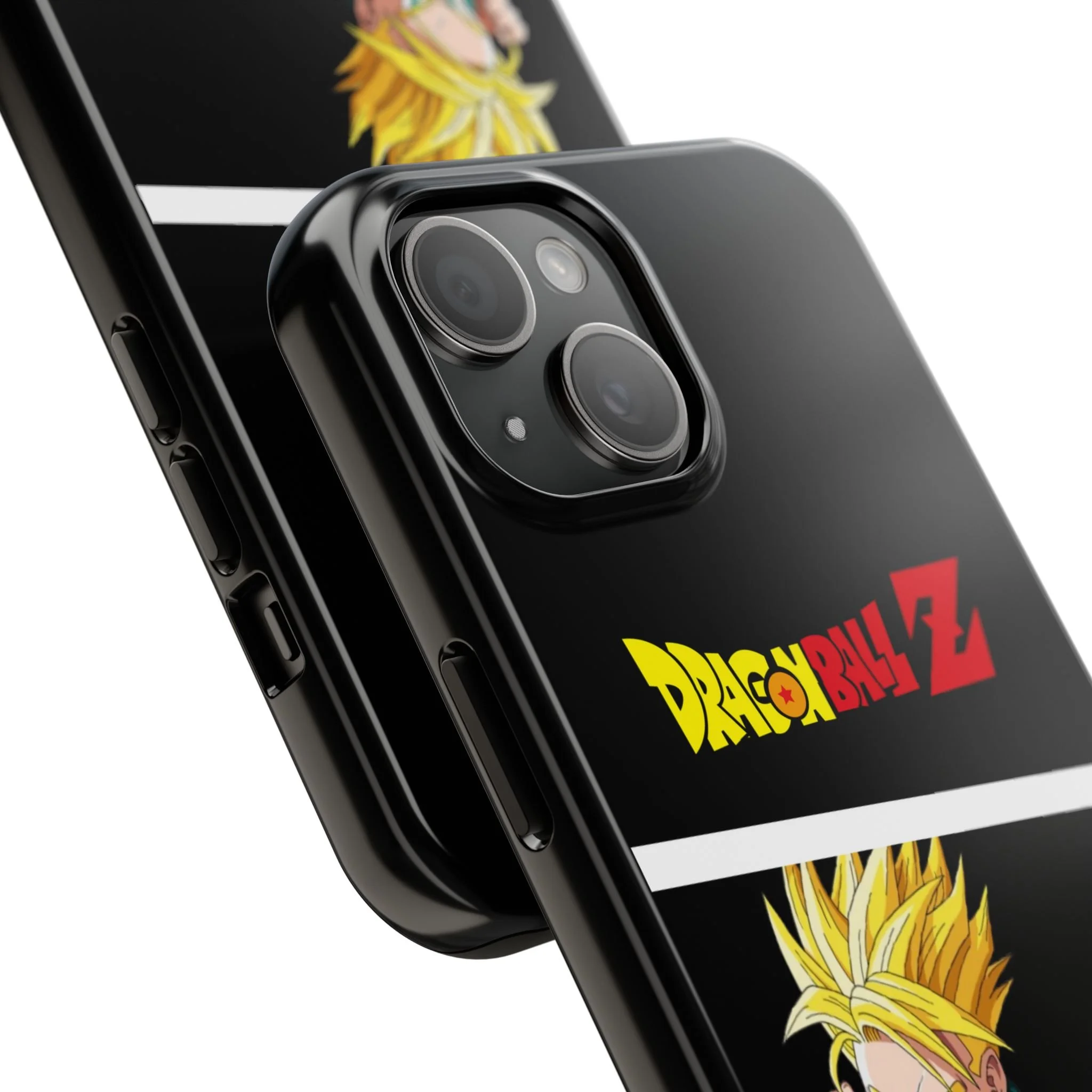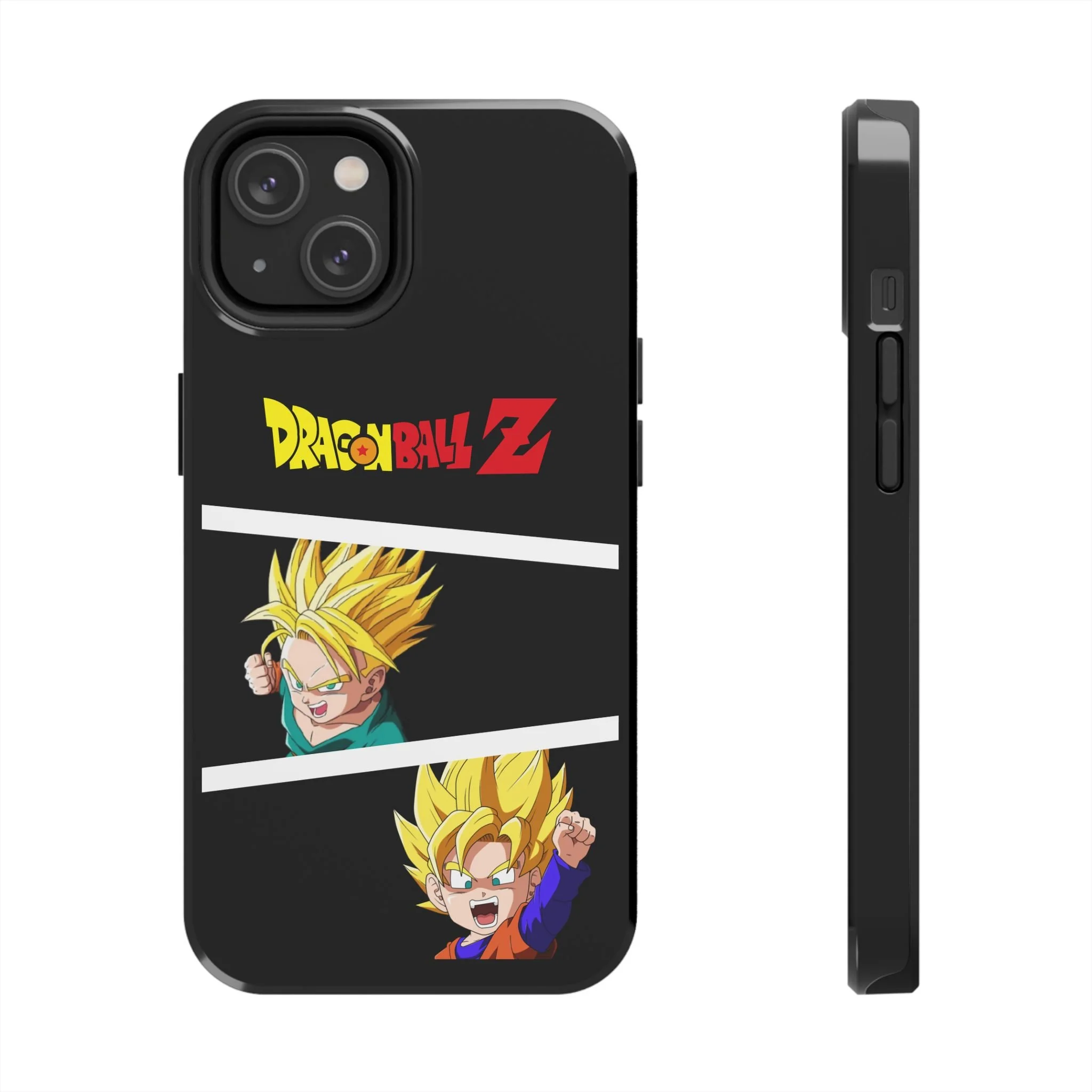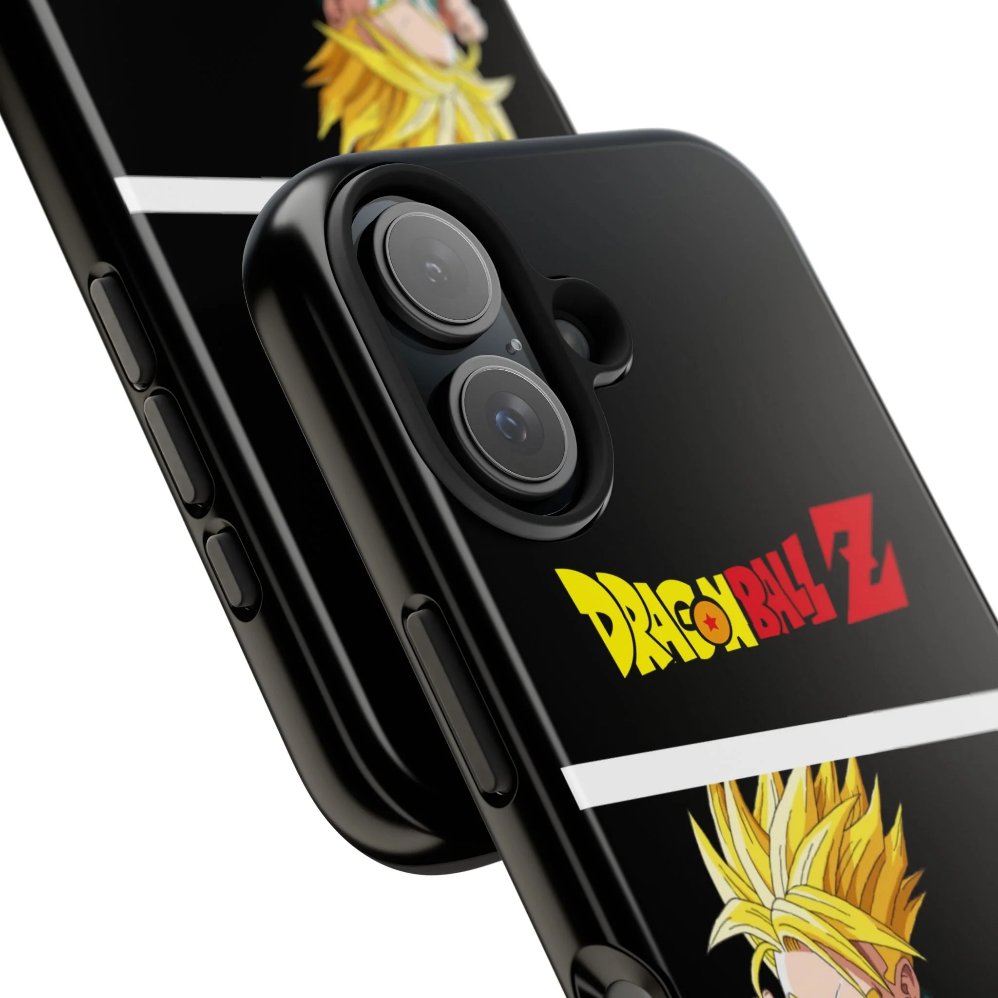 A bold, glossy phone case that brings Dragon Ball Z energy to your everyday carry. The high-shine finish makes the black background and vibrant Super Saiyan artwork pop, with three dynamic vertical panels showing a young Goku powering up. Built with a tough polycarbonate shell and a shock-absorbing TPU liner, this two-piece design shields your phone from drops while a lay-flat bezel helps keep the screen off rough surfaces. UV protection keeps colors bright through outdoor use, and wireless charging remains supported so you can power up without removing the case. It’s a compact, sturdy way for fans to carry a bit of nostalgia and action everywhere they go.