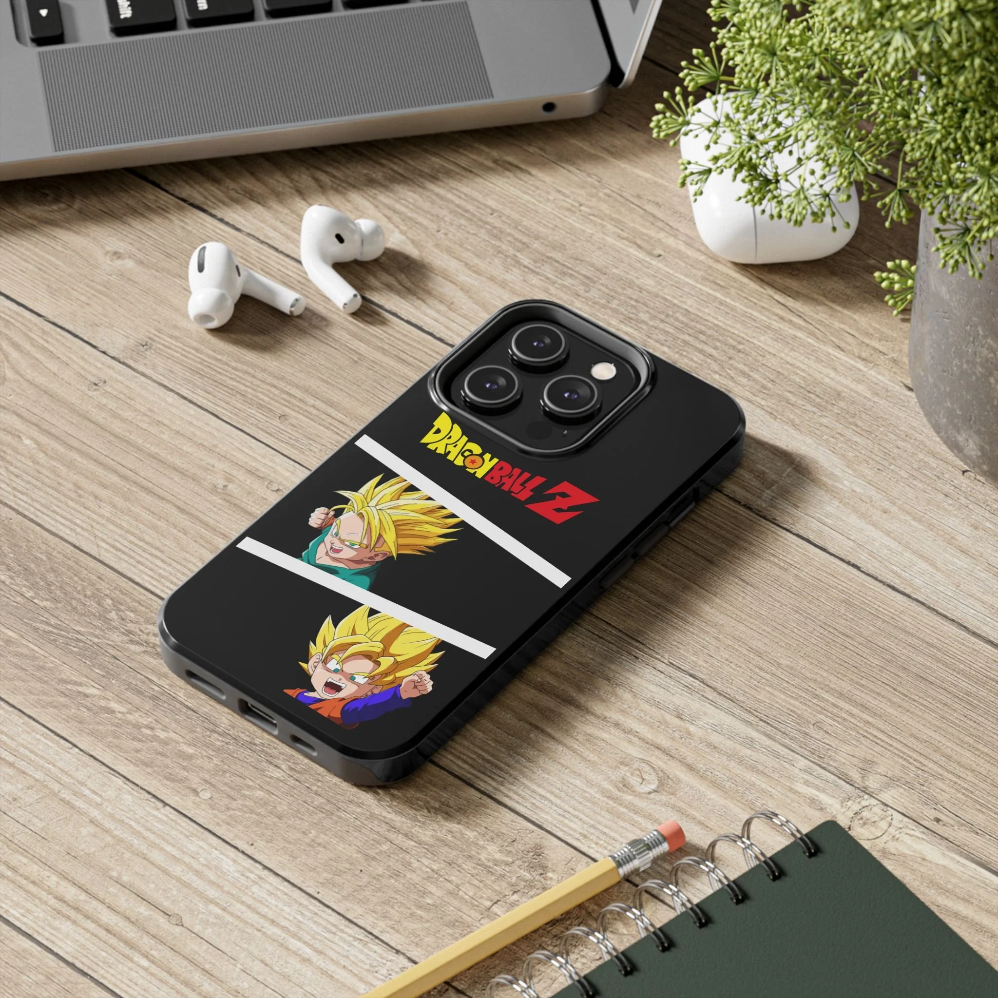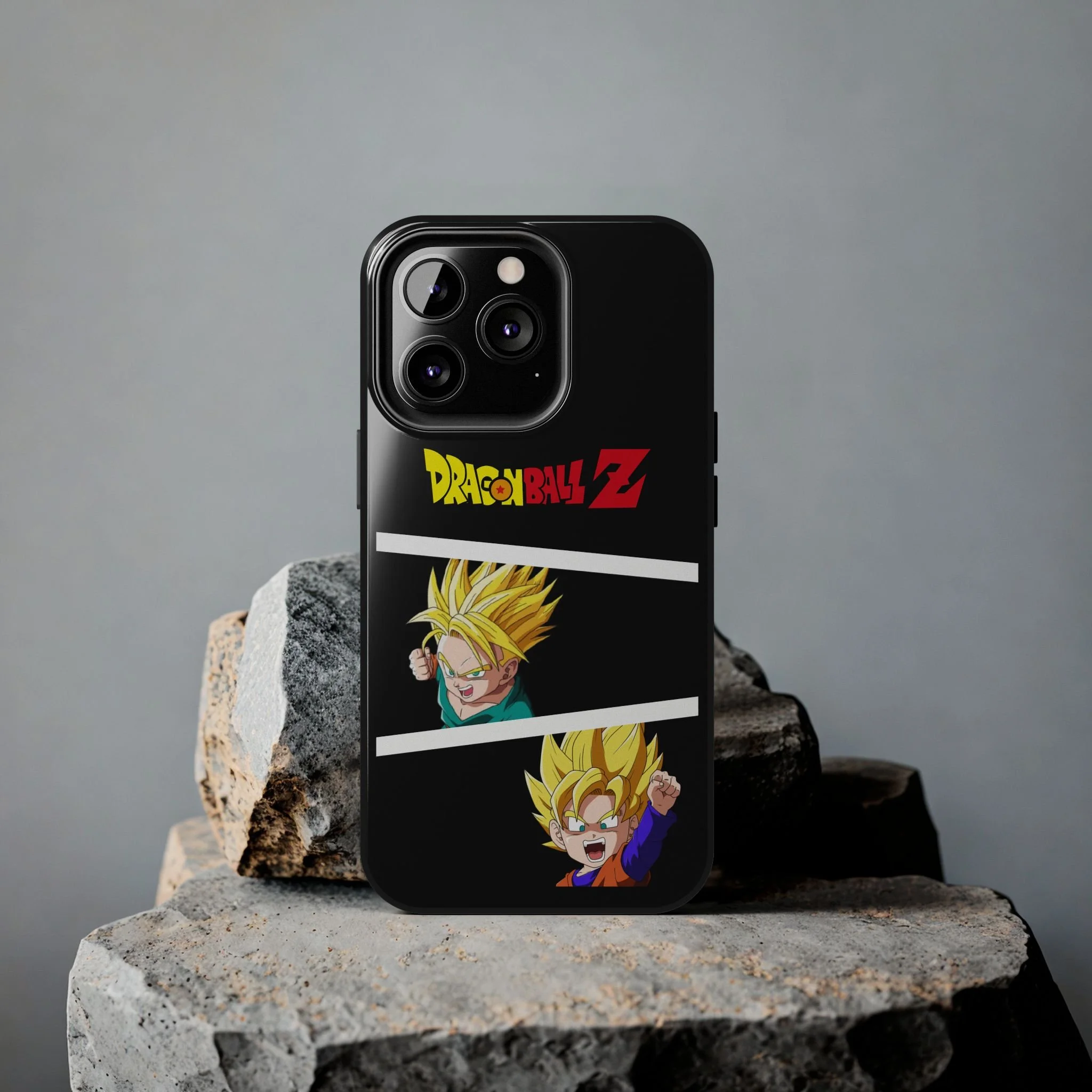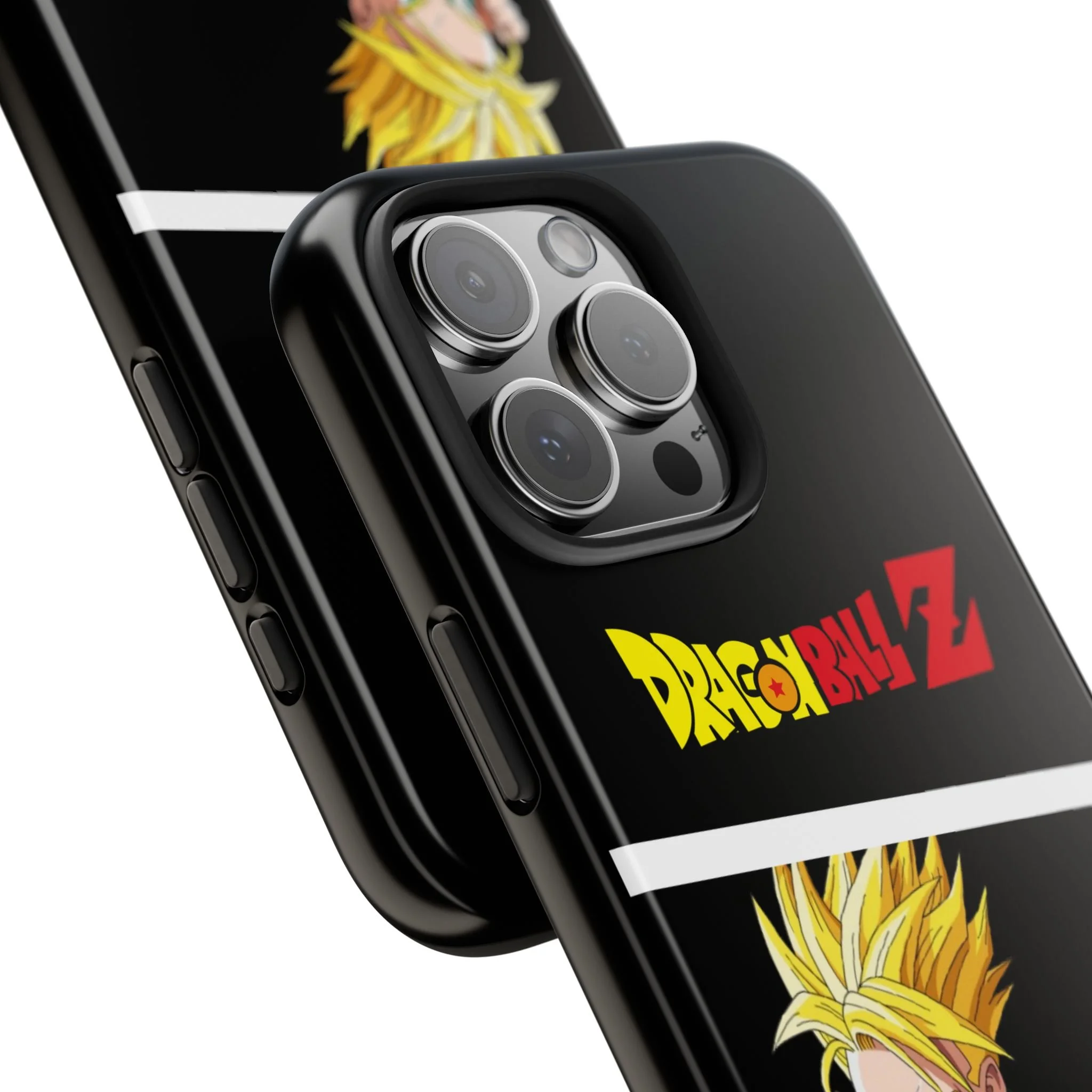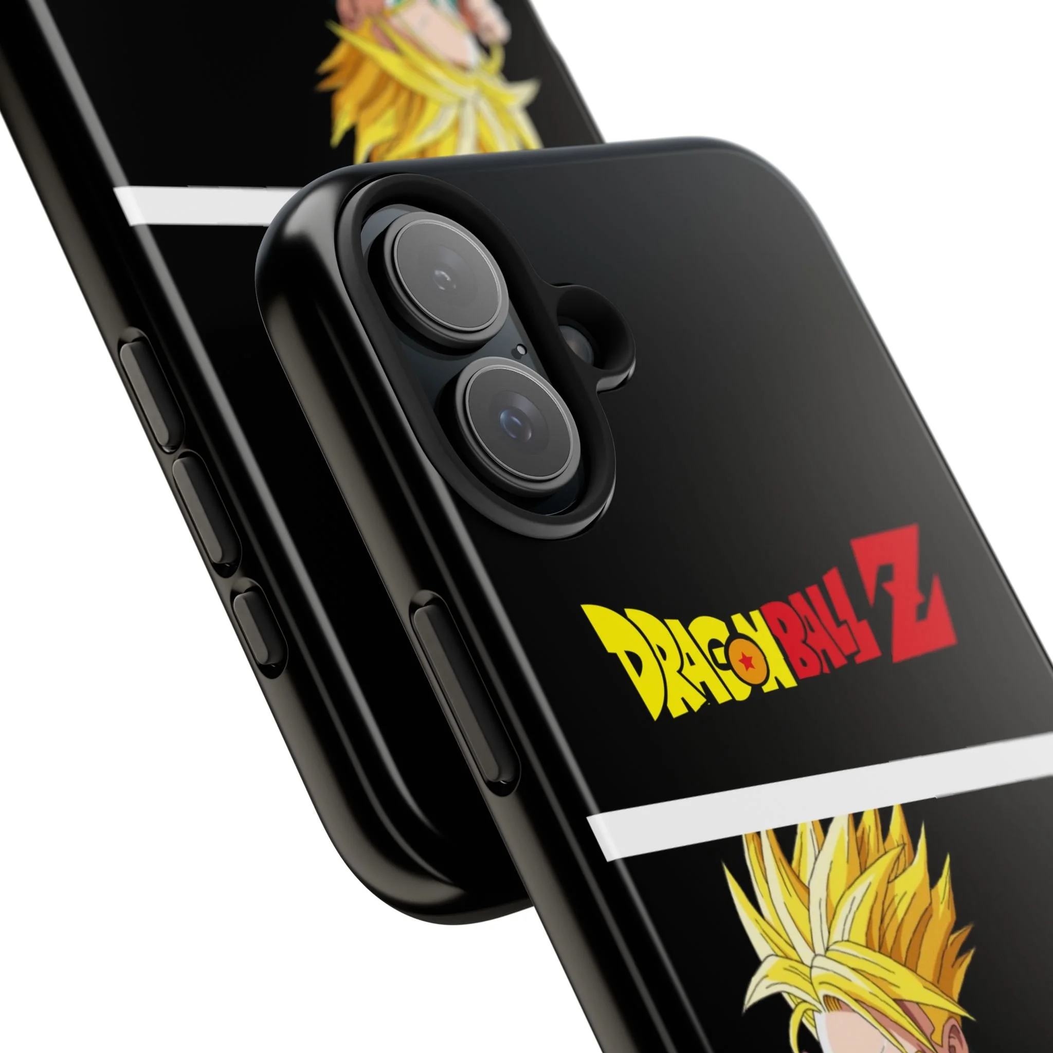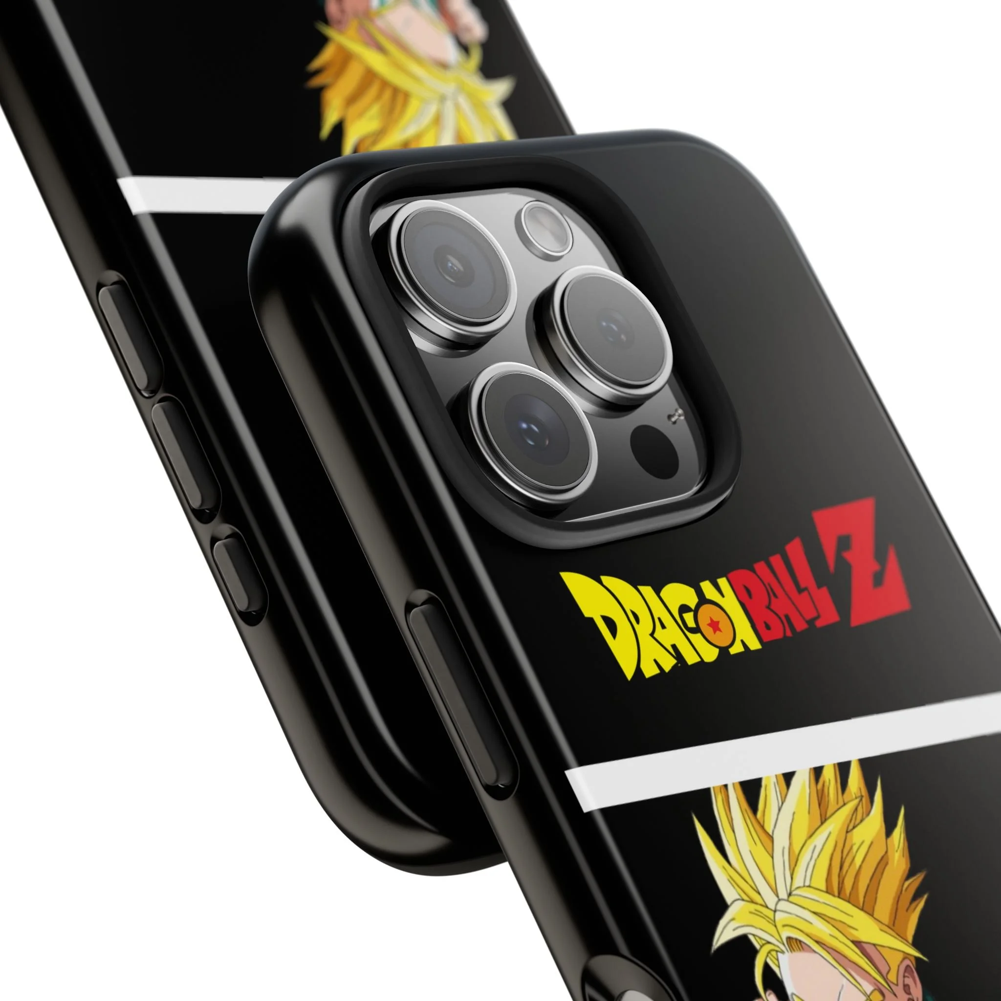 A bold, glossy phone case that brings Dragon Ball Z energy to your everyday carry. The high-shine finish makes the black background and vibrant Super Saiyan artwork pop, with three dynamic vertical panels showing a young Goku powering up. Built with a tough polycarbonate shell and a shock-absorbing TPU liner, this two-piece design shields your phone from drops while a lay-flat bezel helps keep the screen off rough surfaces. UV protection keeps colors bright through outdoor use, and wireless charging remains supported so you can power up without removing the case. It’s a compact, sturdy way for fans to carry a bit of nostalgia and action everywhere they go.